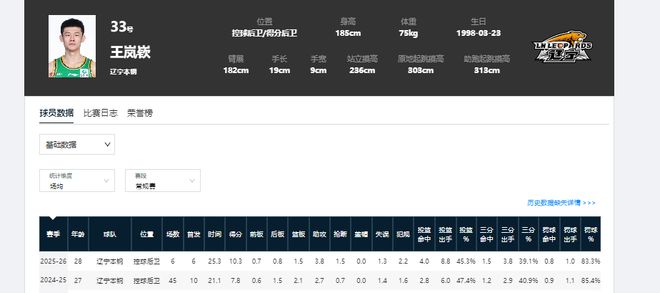 上赛季,绝大多数时间打替补的王岚嵚,场均数据为7.8分2.7助攻1.4失误,投篮命中率47.4%。本赛季成为首发后,6场下来的场均数据为10.3分3.8助攻1.3失误,投篮命中率45.3%。对比看,他的表现几乎没有太大波动,非常稳定。